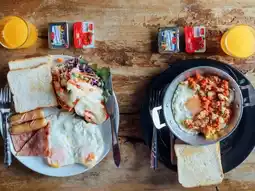 ...Breakfast here 🔆 there will be a corner for tea-coffee, Ovaltine, milk and bread for us to eat without limits. But if you want to eat until you are full or other menus, you can order more breakfast (the price is charged according to the menu you order)