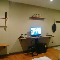 The room has complete amenities, free Wi-Fi 🔌 lots of power outlets, smart TV, table, telephone, mirror, refrigerator, drinking water and clothes rack