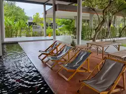 The hotel is decorated in a contemporary Thai style, blending modernity with warmth. The building features wood and white tones, creating a luxurious yet simple atmosphere. 🌸 Surrounded by a small garden and pond, it's a refreshing experience from the moment you step inside.
