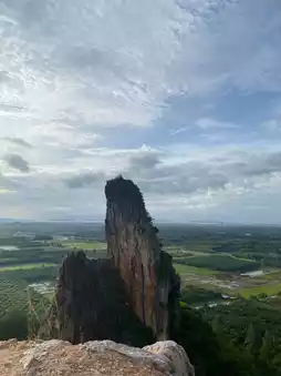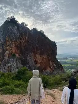 It was my first-ever trip to Songkhla, and I couldn’t miss the chance to visit "Khao Kuha." Located in Rattaphum District, near Phatthalung Province, it’s about an hour’s drive from Hat Yai. On the day of my visit, a storm was approaching. I planned to arrive early to catch the sunrise, but instead, I was greeted by a sea of mist, mountain views, and lush green fields. Was I disappointed? A little, but the atmosphere was beautiful in its own way. Unfortunately, I couldn’t stay long due to heavy rain and strong winds.