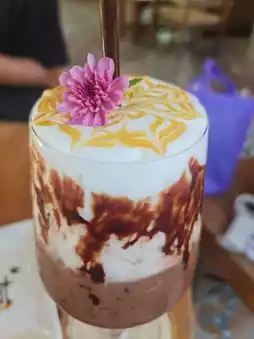 The shop is cute, there are many corners to take pictures, air-conditioned room, soft music, chill out, there are snacks, drinks, ice cream, medium price, but the view is worth millions. Milk, coffee, the quality is beyond the price. In the evening, walk out to watch the sunset along the beach, feel good, very good mood everyone