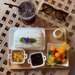 This is a homey-style cafe located in Mueang District, Rayong Province. The shop is surrounded by various trees. The atmosphere is shady and very good for the heart. The highlight of this place is not only the good atmosphere, but the food and desserts are equally delicious. There is also a melon farm, flower garden, and home-grown blackberries.