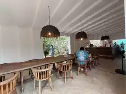 #GetDiscountsWithoutLuck Baan Pat, a comfortable white cafe along a natural stream, surrounded by mangrove forests and nestled next to a large badminton court. Both places are in the same area as a shrimp pond. The owner of this area intends to make it a public area for everyone.
