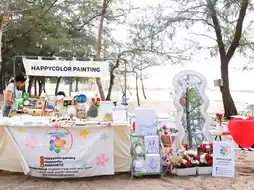 Laem Charoen Beach has Workshop activities every Saturday and Sunday, whether it's painting canvas frames, dolls, stringing beads, and many more. Whoever likes which activity, choose to buy and sit and chill, do it by the sea. There are many shops to choose from.