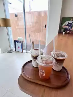 A cafe that is extremely minimalist. The shop is decorated in a minimalist style.