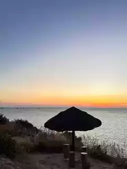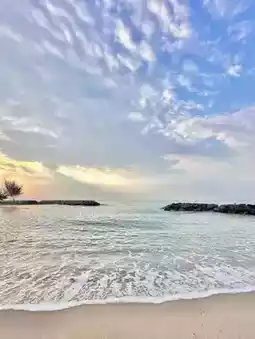 A public beach that stretches into the sea.