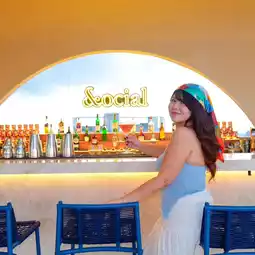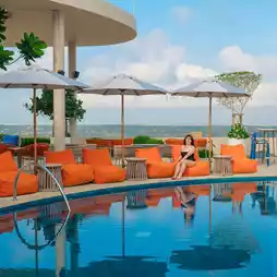 There is a rooftop bar called Social Bar, with a great atmosphere. In the evening, come and chill and watch the sunset while sipping on a cold drink. It feels great. For those who like taking pictures, I recommend coming up in the evening. The light is beautiful. The hotel's swimming pool is on the same floor as the rooftop bar. It is not a very large swimming pool, but the design is great. Taking pictures here makes it look very expensive. Suitable for casual dressing up to take photos rather than serious swimming