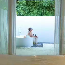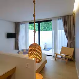 This is a resort that is suitable for couples, families or groups of friends. It meets the needs of all ages. There are 4 types of rooms: Deluxe with Bathtub, Deluxe with Terrace, Family Suite and Pool Villa. The room that Fern stayed in was a Deluxe with Bathtub. The room is decorated in a modern style that gives a warm feeling. There is an outdoor Jacuzzi.