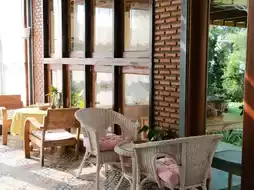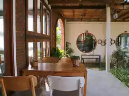 The atmosphere is nice, shady, and warm. I like that there are thin white cloths by the windows to let in the morning light. The light comes down beautifully. And on the opposite side of the shop, there is a sea view. Sit outside and enjoy the cool breeze. It's super healing. 🌊 Or you can sit in the air-conditioned room and sip coffee. 😇