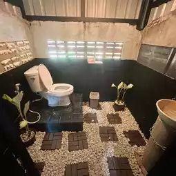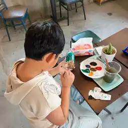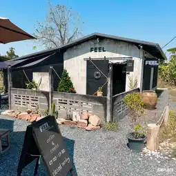 Let's stop by a chill cafe in Rayong. It's a super cool vintage style cafe. The interior of the cafe is made of cement. There are vintage photo corners and plenty of seating areas, both inside and outside. There are also bottle painting activities. 🎨