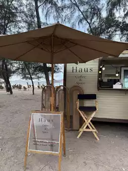 Haus Coffee and Space, a camping-style camper van cafe on Saeng Chan Beach, Rayong Province, has a great atmosphere. You can sit back, relax, enjoy the sea breeze, and watch the sunset. ☀️