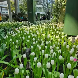 The temperature inside the building is 15 degrees all the time, which is the right temperature for winter flowers. ð·There are colorful tulips blooming, rare purple tulips, begonias, cyclamen, hydrangeas, and over a hundred other varieties. âïļ If you want to sit and watch the flowers, sip coffee, and chill, there is a famous coffee shop inside. It is considered a very good mood.