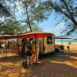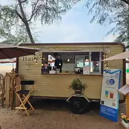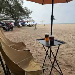 🏝It is a cafe to chill by the sea, on Laem Charoen Beach, food truck style, no air conditioning, sitting with outdoor hiking chairs, but the atmosphere in the morning is very chill. We can sit and sip coffee by the sea, with a gentle breeze, listening to music along with nature in the morning, and can sit and chill all day long. What's better is that the shop is open until the evening until early evening. We can sit and watch the sunset in the evening.