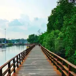 🌟If anyone visits Rayong Province and is tired of the sea, I recommend coming here. The mangrove forest in the middle of Rayong City is a large mangrove forest near the mouth of Rayong River and in the heart of Rayong City. There are pavilions to sit and enjoy the breeze and view the river mouth. Walk along the nature study trail of the mangrove forest. There is a learning center for the mangrove forest, Phra Chedi Klang Nam, to study and provide knowledge. Inside the mangrove forest, there are many types of trees such as mangrove trees, sedges, acacias, and padu trees. There are also many types of sea animals, such as sea crabs and climbing fish.