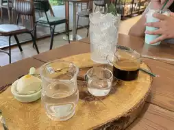 For the shop's signature drink, ☕️ Kritsana coffee is served as a set with extracted Kritsana water, giving it a woody aroma and a new flavor. I must say, it's all here in one place.
