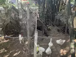 🐓: There are animals for children to see, including chickens 🐔, ducks 🐣, and fish in the pond 🐠.