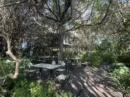 🌳: There are no air-conditioned seats in the shop. They are outdoors under the house and in the garden.