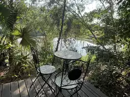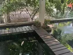 🌿: There is a wooden bridge for walking around the garden around the shop. The shop is located by the water.