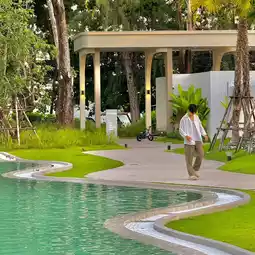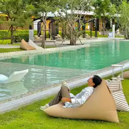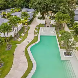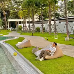It is a quiet resort. Come to relax and feel relaxed. It is really suitable for relaxation. The atmosphere in the resort is very shady. Look at every corner, there are trees almost everywhere. Here there is a large swimming pool in the middle of the resort. There is a Splash Jungle zone, a water park for children. There is also a sea in front of the resort. Walk across the road and you will arrive. Very good 🫶🏻🏖️🩵