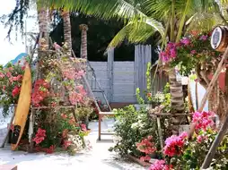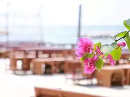 🌸Currently, take photos with beautiful multi-colored bougainvillea flowers and pink trumpet flowers in front of the shop.