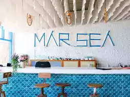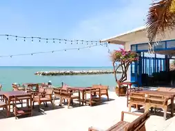 🚙Come to a beachside cafe in Bali style with blue and white tones at 🏖Mar sea at suchada rayong