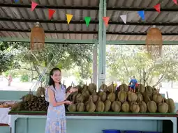 🌳For those who want to eat durian and fresh fruit from the garden, both sweet, fragrant, delicious, I must say that anyone who is a durian lover must not miss it. Comes with seasonal fruits. There is a peeling service. If you want any kind of flesh, just tell Jay Ree. You can both visit the garden and eat delicious durian like this. I must say that you will not be disappointed. The owner is lovely. The staff provides good service. It's like visiting a relative's garden.