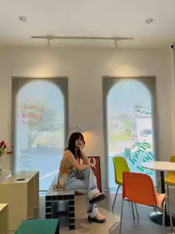 • A small shop, not very big, but decorated with cute corners, both indoor and outdoor, bright and full of photo props.