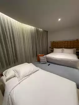 🛏️ Let's come to the guest room. The room is just the right size. The large glass has a good view of the city. The bed is large and very soft. The air conditioner is cool. Decorated in a brick orange tone, which is very beautiful. Get a very good vibe of the room.