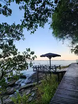Khao Laem Ya National Park in Rayong Province is a must-visit destination for nature enthusiasts and sea lovers. The park features a scenic coastal cliffside walkway, stunning rocky views, and the soothing sound of waves crashing against the shore. Strolling along the path feels like light exercise amidst nature. The highlight is during the evening when the golden sunlight reflects beautifully on the water as the sun sets—an indescribable sight. Wild monkeys are quite common in the area, so it's advisable to secure your belongings, but their presence adds a unique touch to the natural experience. This location is perfect for solo travelers, outings with friends or family, or even romantic dates. It offers tranquility, beauty, and a refreshing atmosphere all in one place.