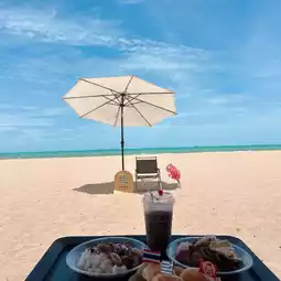 The shop is located in the front area, near the food zone. We went to sit and chill by the Rayong sea. I like this kind of atmosphere. Plus, eating delicious food is something that is very good for the heart. 🫶🏻