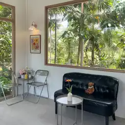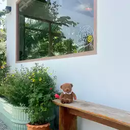 A garden-like atmosphere surrounded by trees and flowers 🌼🍃, perfect for taking cute photos. The garden seating is shady and the breeze is cool.