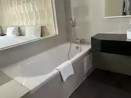 The hotel offers a variety of room types. We stayed in a pool view room. The room was spacious, with a large, comfortable bed and complete amenities. The large bathroom even had a bathtub, so we could soak in it. The pool is beautiful and large, right next to the fitness center, perfect for those who love working out. I loved it! The restaurant is huge and has a wide selection of breakfast options. If you're looking for a place to stay in Rayong, I highly recommend this hotel. It's a great value. I give it a 10/10 rating.