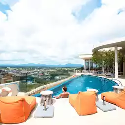 Highlights include a rooftop swimming pool and rooftop bar offering stunning 360-degree views of both the sea and mountains.