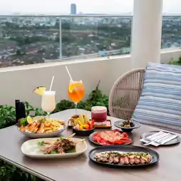 🍸 Enjoy a relaxing drink at the Social Rooftop Bar on the 25th floor, while enjoying the sea and sunset views.
