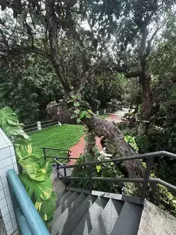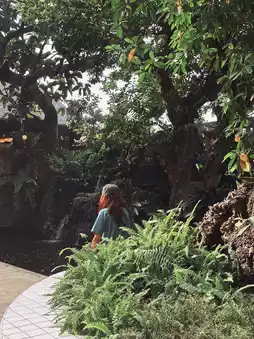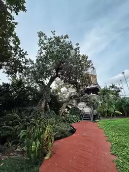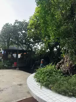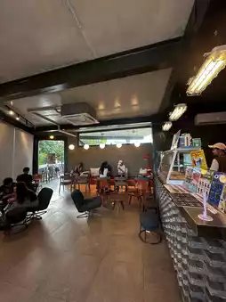 Large trees and a breathtaking view of the back of the shop. I love that they have an air-conditioned room at the back. There's both indoor and outdoor seating, complete with a koi pond for a chill vibe. Everyone here looks so cool! 😎