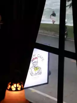 A super chill cafe that cafe lovers and beach lovers must visit! 💙 Kasem Cafe is located right on the beach. The warm, vintage atmosphere, wooden furniture, and soft lighting from classic chandeliers 🕯️ make you feel like you're in a beach house filled with stories.