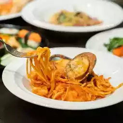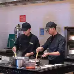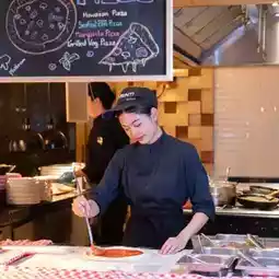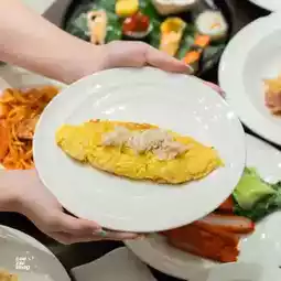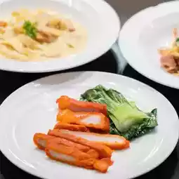 Thai cuisine features a full menu of Thai favorites such as Pad Krapow, Red Curry/Green Curry, Tom Yum, Tom Kha Gai, and Crab Omelet. Pasta dishes are prepared to order, including pizza and sushi. There's also a jasmine rice or brown rice porridge station, served with side dishes and desserts. And most importantly, there's a food station where food is prepared freshly, one-by-one, ensuring you get hot and delicious food.