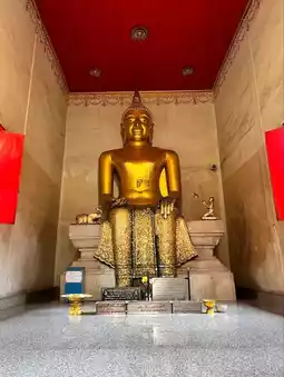 108 Auspicious Footprints: The temple houses Buddha images and other sacred objects for worship, including the 108 Auspicious Footprints, a popular attraction for those seeking merit and blessings for a prosperous life.