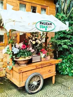 🥳Phuean Suan Farm in Rayong is perfect for those looking to escape the hustle and bustle and relax in a relaxing atmosphere. The restaurant is located in a spacious open space, surrounded by a vegetable garden and lush trees, offering a refreshing and relaxing atmosphere from the moment you step inside. The restaurant's décor emphasizes simplicity and naturalness, with both air-conditioned and open-air areas offering cool breezes and unobstructed views of the garden. Perfect for chilling out with family or friends.