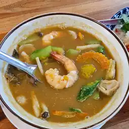 ✨️Recommended dishes include Nai Dol's signature Tom Jo Talay, a clear Tom Yum soup with pickled mustard greens. The flavors are delicious and appeal to Thais. The curry dishes are also flavorful, and the sour curry is spicy. Another recommended dish is the mixed vegetable and fresh shrimp curry, which is incredibly delicious. The fried tofu with chili and salt is also delicious as a snack. The atmosphere is simple, like dining at a regular restaurant. There's no view, but the restaurant's distinctive flavors are authentic Thai cuisine. You're sure to love it!✨️