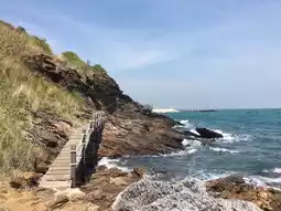 This is one of my favorite viewpoints in Rayong. If you come in the evening, the sunset light is absolutely stunning! ☀️ There's a long wooden walkway with grass growing up the hillside, and there are so many photo spots.
