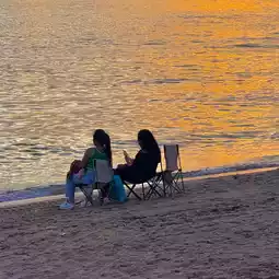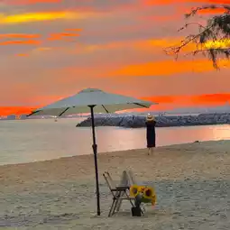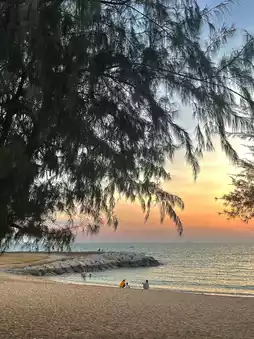 We stopped by to watch the sunset slowly disappear over the horizon at Laem Charoen Beach, Rayong Province. The evening atmosphere is absolutely wonderful, so peaceful and relaxing. The sound of the waves crashing and the sea breeze constantly blowing is incredibly soothing. It's a small corner of Rayong Province that we highly recommend everyone to visit, sit quietly, and let this moment heal your soul in silence. 🫶🏻🤍🌊