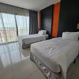 ⭐️Hub de Leaf @ Rayong Hotel in Rayong Province⭐️ This small, 3-star hotel offers modern, clean, and affordable rooms. The building features striking colors and bright, modern décor. Access is convenient even if you have a car, though the journey may be a bit steep. In-room amenities include free Wi-Fi, air conditioning, and drinking water. Breakfast is also available. It's also close to tourist attractions and shops.⭐️