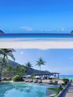 The resort features a private white sand beach, secluded from crowds, offering a tranquil seaside experience.