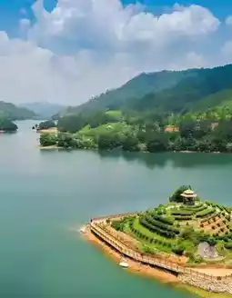 Here, you'll find stunning lake and mountain views that will make you linger and forget to leave. Known as the "First Lake of Western Sichuan," its emerald waters shimmer under the sunlight. Surrounded by lush green hills and trees, the distant mountains unfold like a painting, leaving you in awe of nature's magic and beauty.