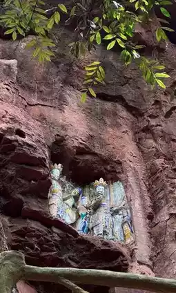 Not only is the natural scenery here stunning, but the cultural heritage is also very rich. There are 161 inscriptions by famous historical figures such as Li Bai and Su Shi, as well as 68 niches with more than 2,400 cliff carvings, each telling a story of history📜 The most famous is the "Fish Calling Pond." It is said that when Su Dongpo was studying here, he met his teacher’s daughter Wang Fu because she named this pond "Fish Calling Pond," which led to a beautiful story.