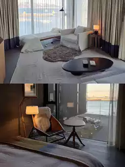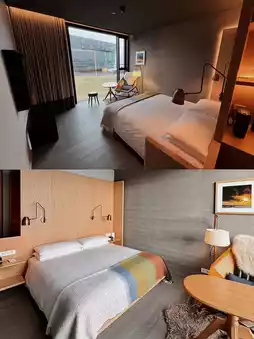 🖼️ The hotel was designed by Roman and Williams. The interior is dominated by black, echoing the ebony exterior walls. It has a sculptural reception desk, unique paintings and carpets, and perfectly blends industrial style with artistic atmosphere. The 253 rooms and 27 suites offer stunning views of the harbour, Mount Esja and the Snæfellsjokull glacier. In addition to the standard Le Labo toiletries🧴, the room was replaced with a rainbow wool blanket, full of Nordic style. When the aurora breaks out, this is one of the best viewing spots in Reykjavik. You can enjoy the dreamy aurora without leaving your home.