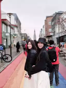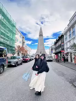 Our first stop was the vibrant and iconic Rainbow Street 🏳️🌈 — a must-see that absolutely lives up to the hype. As we strolled up Skólavörðustígur, the colorful pathway led us straight to the majestic Hallgrímskirkja Church ⛪. Naturally, we couldn’t resist taking that signature photo right in the middle of the rainbow, with the church standing tall in the background — such a dreamy view for the feed! 📸