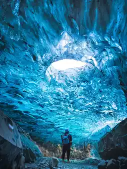 🔹 Explore the blue ice caves with professional gear, feel the millennia-old blue ice