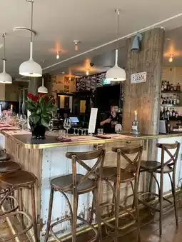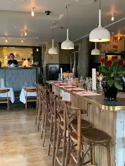 A BISTRO WITH VIBRANT ATMOSPHERE.